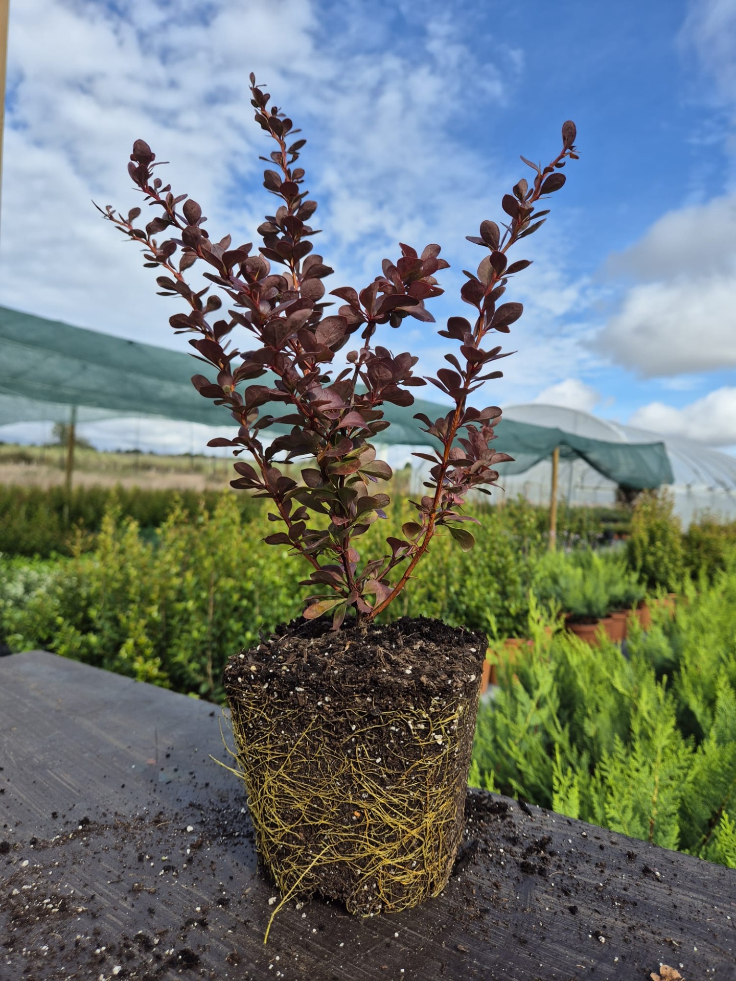 Arbusto vigoroso, caducifólio, apresenta um porte arredondado, atinge entre 1,5 a 2 metros de altura e largura, com ramificação densa e espinhosa.