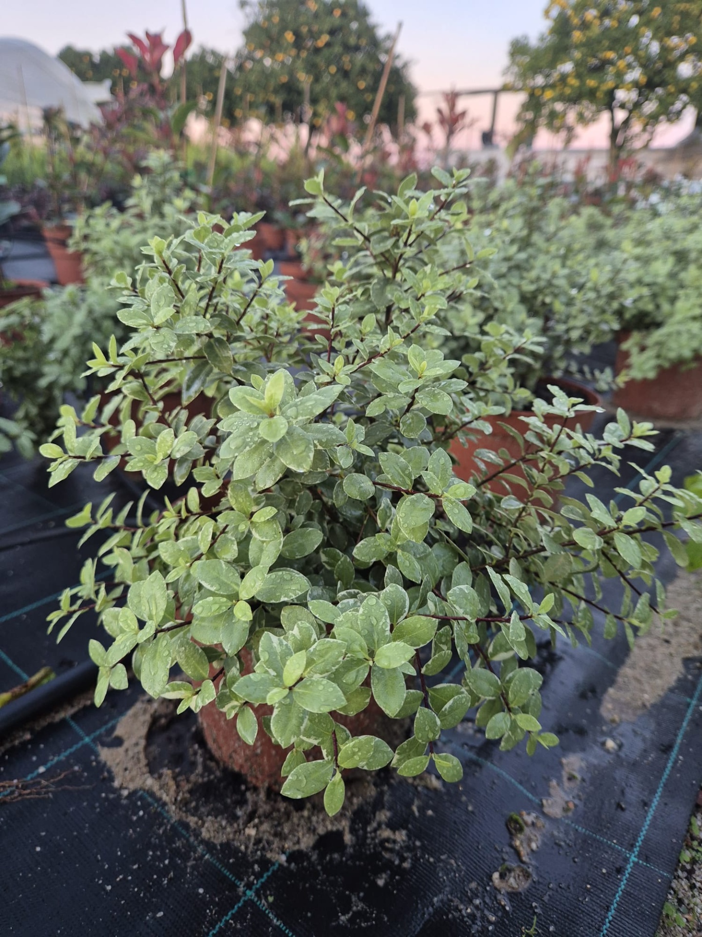 Caracterizada pela sua forma naturalmente globosa e pela folhagem persistente de tonalidade verde-prateada, com margens irregulares esbranquiçadas.